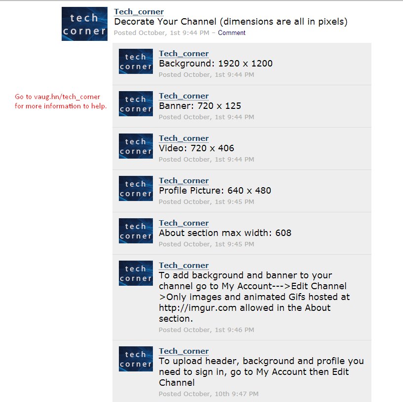 http://vaughnlive.tv/tech_corner for help with settings and assistance with loading banners,headers, backgrounds, and profiles. We also have additional information loacated at